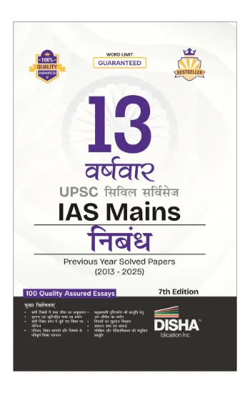 The updated 7th Edition of 13 Varshvaar UPSC Civil Services IAS Mains NIBANDH Year-wise Solved (2013 – 2025) consists of Past 13 years Solved Papers of the IAS Mains Paper 1 – Nibandh in Year-wise format.