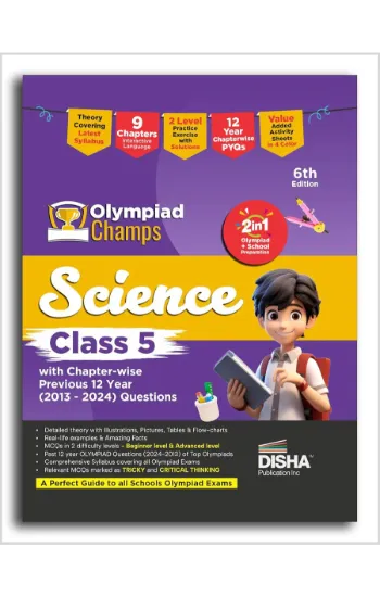 The thoroughly Revised & Updated 6th Edition of Olympiad Champs Science Class 5 with Chapter-wise Previous 12 Year (2013 – 2024) Questions is a complete preparatory book not only for Olympiad but also for Class 5 Science. This new Edition now comes in 2 color and has many value added features: