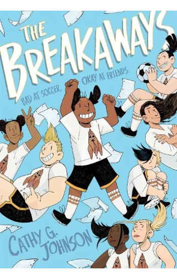 Faith, an introverted fifth grader with a vivid imagination, starts middle school worrying about how she will fit in. To her surprise, Amanda, a popular eighth grader, convinces her to join the school soccer team, the Bloodhounds. Having never played soccer in her life, Faith ends up on the C team, a ragtag group with a tendency for drama over teamwork. Despite their losing streak, Faith and her fellow teammates form strong bonds both on and off the soccer field, which challenge their notions of loyalty, identity, friendship, and unity. The Breakaways is a positive exploration of the complexity of female friendships, as well as the ups and downs of middle school life. Cathy G. Johnson brings this diverse and spirited group of girls to life with her joyful art style and honest, thoughtful writing.