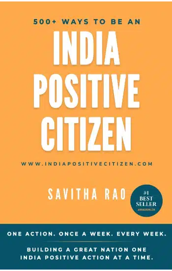 500+ ways to be an India Positive Citizen One action.Once a Week. Every Week. Building a great Nation, one #IndiaPositive action at a time. A nation of a billion+ needs a billion people nurturing it with mindful actions. The India Positive Citizen concept is comprehensive and holistic covering so many aspects of life in India. The concept is powerful and the ideas are actionable. A new model for the new world we find ourselves in. India is a large and diverse nation. It’s not easy to come up with a game-changer idea that applies to all Indians. This is an idea, which every Indian can bring to life with their daily actions. Every member of the family and society – from a 10-year-old child to senior citizen can joyously participate. It is brilliantly win-win. Everyone gains – the doer, the beneficiary and the nation. As citizens we do many actions in the course of a day. Each one offers an opportunity to make a difference. In the book you will find ways in which you can make a difference when you buy products as a consumer, when you cook meals, as a member of your community wherever you live and so much more. The book has ideas for various aspects of life and for every demographic. The ideas are practical and doable by most readers of the book. It is not about the novelty or diversity of actions. It is about connecting the dots of consistent action with the big impact it can make on one’s community and country. This is an unprecedented time. It’s time for unprecedented kindness in action. Dive in. Explore the ideas. Get inspired into action. Invite your family, friendsand colleagues – everyone to join in. This is a book for every Indian on the planet.