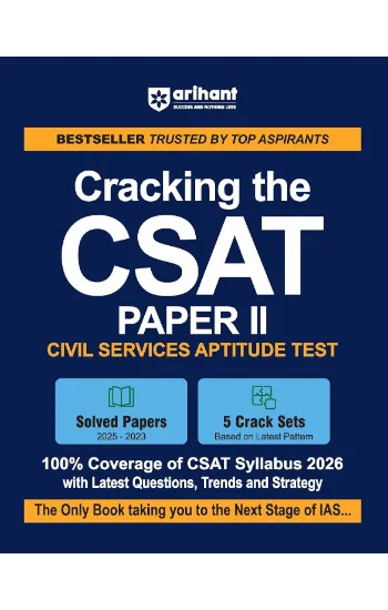 Cracking the CSAT (Paper-2) 2026″ is a focused and exam-ready resource designed for aspirants of the UPSC Civil Services Preliminary Examination – General Studies Paper-2 (CSAT). This English Medium edition includes fully solved previous year papers (2025 to 2023) along with 5 full-length Crack Tests based on the latest UPSC exam pattern. The book supports analytical thinking, comprehension, decision-making, and numeracy, all key areas of the CSAT syllabus.