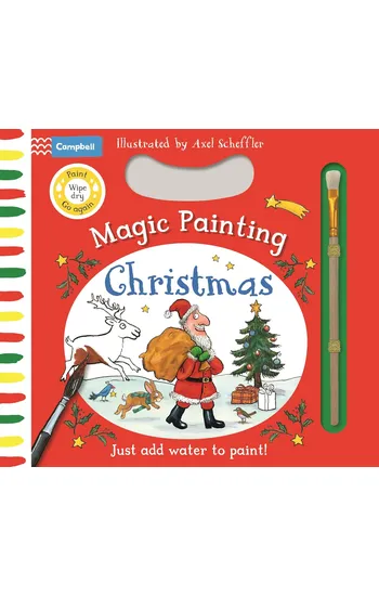 Join in the festive fun with this brilliant magic water painting activity book, with artwork from Axel Scheffler, bestselling illustrator of The Gruffalo. Each page can be used again and again after drying, and there are things to spot and count on every page too. With a paintbrush to help develop fine motor skills and an easy to grasp carry handle, this activity book, is the perfect gift for little ones out and about or at home.
