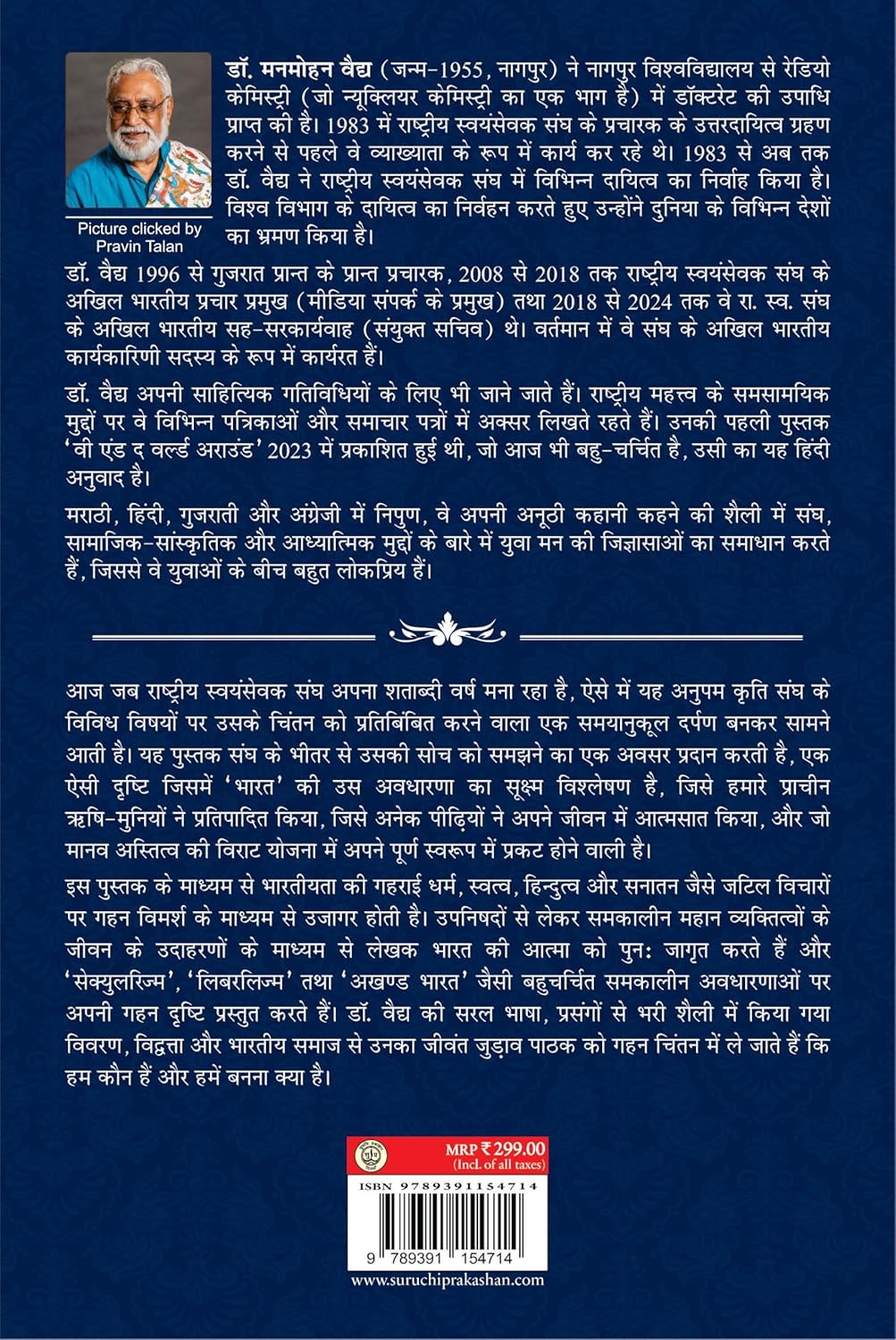 आज जब राष्ट्रीय स्वयंसेवक संघ अपना शताब्दी वर्ष मना रहा है, ऐसे में यह अद्वितीय कृति संघ के विविध विषयों पर उसके चिंतन को प्रतिबिंबित करने वाला एक समयानुकूल दर्पण बनकर सामने आती है। यह पुस्तक संघ के भीतर से उसकी सोच को समझने का एक अवसर प्रदान करती है, एक ऐसी दृष्टि जिसमें ‘भारत’ की उस अवधारणा का सूक्ष्म विश्लेषण है, जिसे हमारे प्राचीन ऋषि—मुनियों ने प्रतिपादित किया, जिसे अनेक पीढ़ियों ने अपने जीवन में आत्मसात किया, और जो मानव अस्तित्व की विराट योजना में अपने पूर्ण स्वरूप में प्रकट होने वाली है। इस पुस्तक के माध्यम से भारतीयता की गहराई, धर्म, स्वत्व, हिन्दुत्व और सनातन जैसे जटिल विचारों पर गहन विमर्श के माध्यम से उजागर होती है। उपनिषदों से लेकर समकालीन महान व्यक्तित्वों के जीवन तक के उदाहरणों के माध्यम से लेखक भारत की आत्मा को पुनः जागृत करते हैं और ‘सेक्युलरिज्म’, ‘लिबरलिज्म’ तथा ‘अखण्ड भारत’ जैसी बहुचर्चित समकालीन अवधारणाओं पर अपनी गहन दृष्टि प्रस्तुत करते हैं। डॉ. वैद्य की सरल भाषा, प्रसंगों से भरी शैली में किया गया विवरण, विद्वत्ता और भारतीय समाज से उनका जीवंत जुड़ाव पाठक को गहन चिंतन में ले जाते हैं कि हम कौन हैं और हमें बनना क्या है ?
